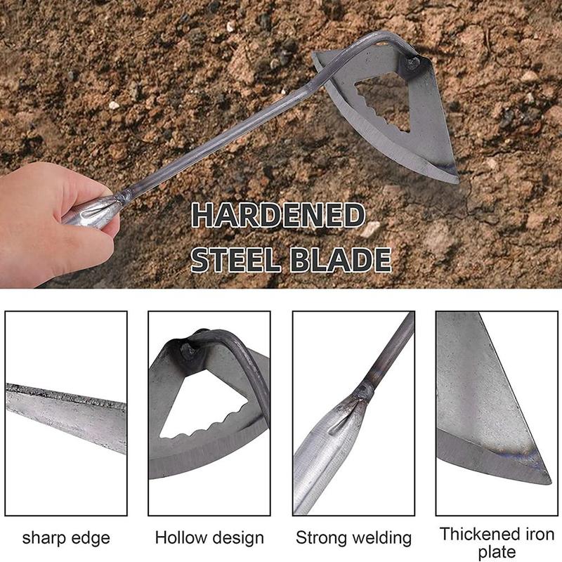 NOTE: This handmade hoe is very sharp. When using it, you must wear protective gloves to avoid injury. In addition, it must be kept away from children.